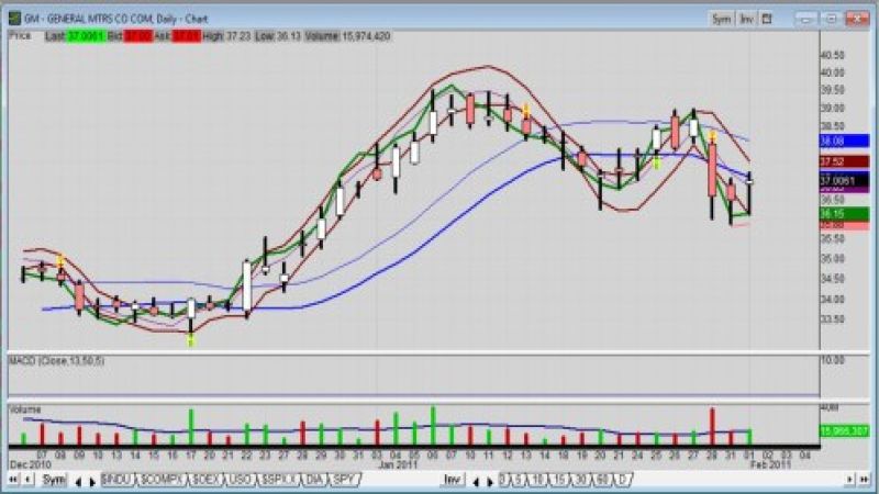 The day chart shown shows price support between 35.89 - 36.27, most recent swing lows. GM stock appears under pressure by all the news of Egypt and commodity prices, including oil and gasoline.