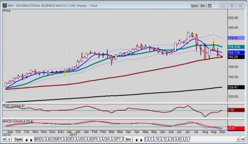 There was that sell-off in July, but IBM has held up far better than most stocks. In fact, the daily chart (not shown) has the 50-day moving average above the 150-day moving average.