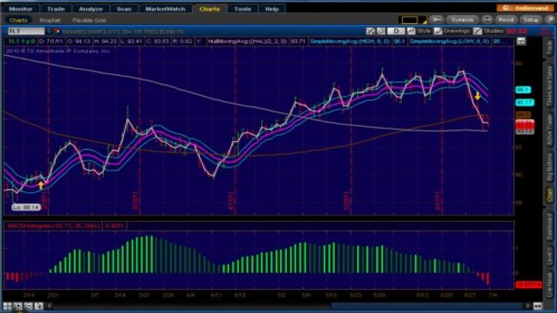 With QE2 officially over, the ETF for the 20 year bond (TLT) is already showing signs of lower prices and higher interest rates. (Ref: Barclay's 20 Year Bond ETF (TLT). Daily chart by Frank Sherosky using thinkorswim platform)