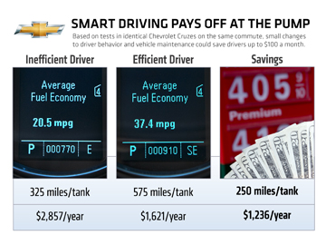According to the latest news release, Chevrolet selected two identical compact cars for a typical workday commute. The results show that sweating the small stuff could save drivers as much as $100 a month at the pump.