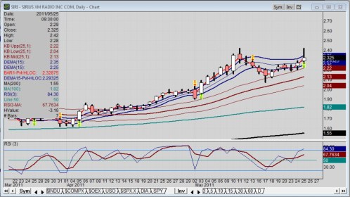 For the record, Sirius stock hit a high of 2.42 today, forming a near-term double top from 5/11 on a daily chart. You’ll have to go back to July, 2008 to find this stock trading at this price level.