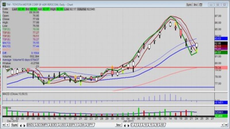 On the fundamental side, Toyota’s recall issues had taken its toll on its position in the U.S. auto market, falling from second to third place, behind General Motors and Ford Motor Co., and the stock fell from its lofty price of 134.31 in 2006.