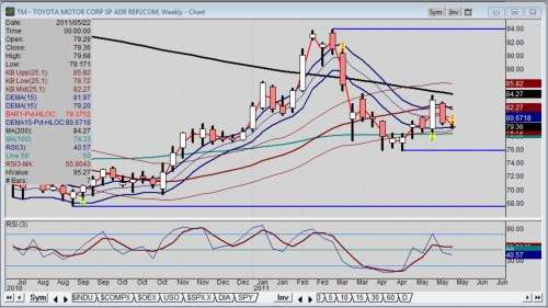 On the top side, we the 93.90 high of February 2011 as investors responded positively to the news that the accelerator issues were not eh direct result of electronics. Of course, market responses often get overdone; and this case was no different.