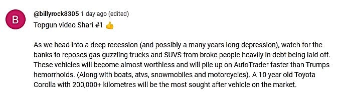 From a recent Car Help Corner YouTube channel episode about car models that are the cheapest to buy and maintain, one comment stands out as a reality check on what happens to cash-strapped car owners: