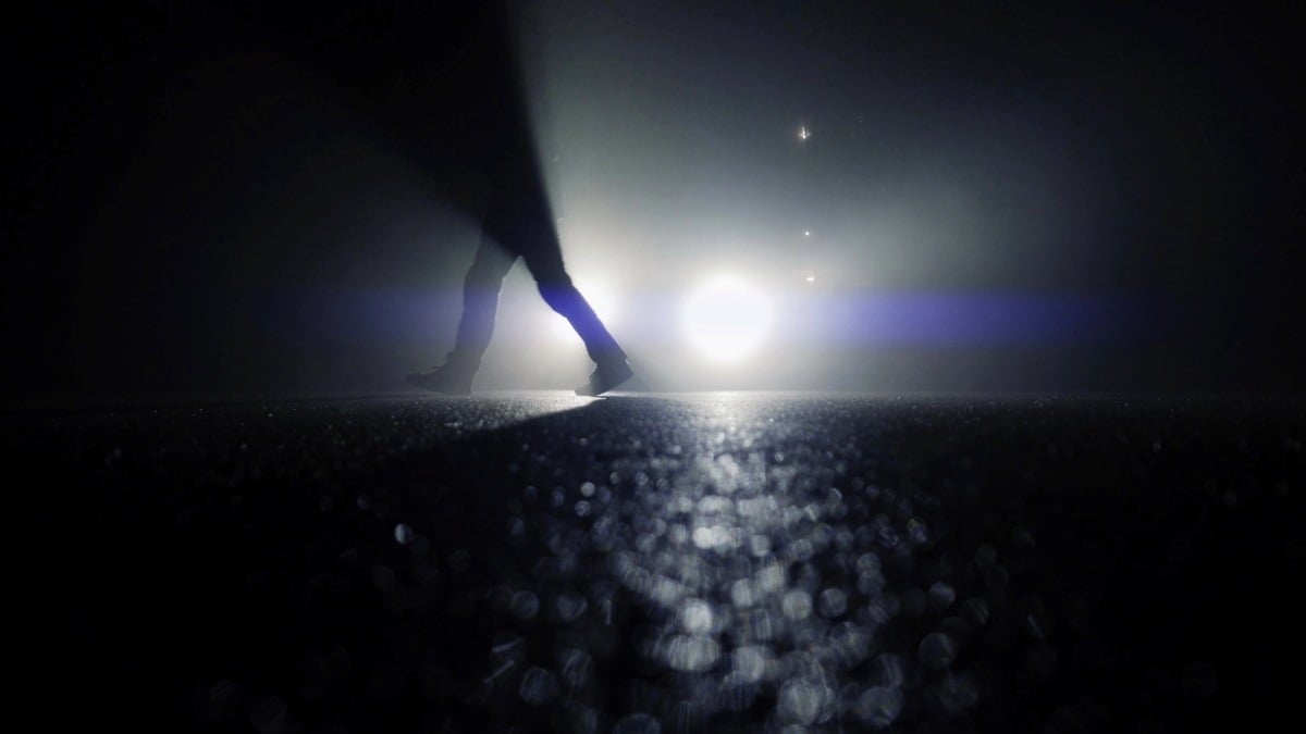 Dressed entirely in black, walking directly in our lane. Right where we should have been.
