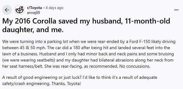 The OP's claim that the family's Toyota saved their lives is not hyperbole. Many post readers responded similarly with their testimonies: