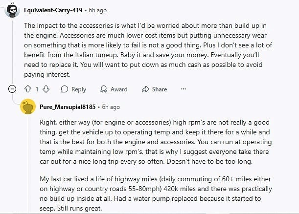 A recent Reddit r/MechanicAdvice forum discussion asks whether redlining their old RAV4 is a beneficial or possibly harmful to their family car: