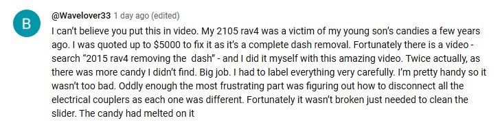 As a parent, I can identify with those moments when our inner adult emotions are faced with an unexpected bill, leading us to question whether having children really is worth all the trouble and expense. For example, take this recent repair shown by a Toyota mechanic about how a 2007 Rav4 was brought down by a small piece of candy.
