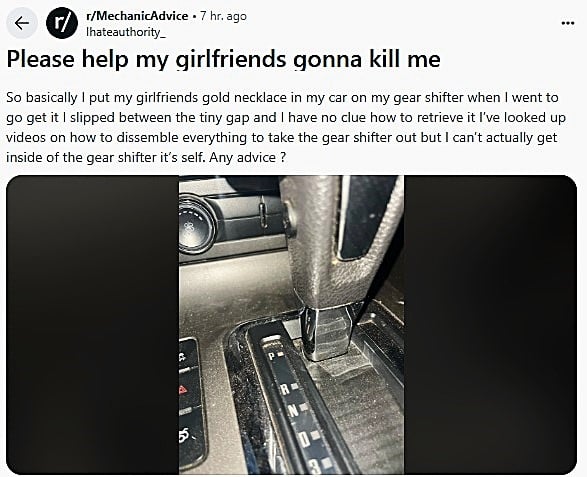 A recent post on Reddit r/MechanicAdvice is a call for help from OP Ihateauthority_, who sounds like he is panicking; however, it is not clear if it is because of the incident or that his girlfriend will find out about the incident.