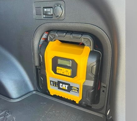 Many Rav4 models come with a cargo area wall-side cubby hole that just begs for an accessory that is useful and looks sharp. One recent example, reputedly purchased at a Costco store and reported by a 2025 Rav4 Woodland model on the Reddit r/rav4club forum, is a combination jump starter/air compressor/power bank/tire inflator.