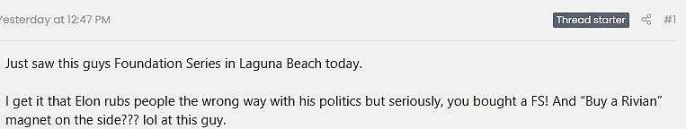 The "I Bought This Before We Knew Elon Was Crazy" sticker and the "Buy a Rivian" magnet struck a chord with some Tesla owners who expressed their opinions on the matter in their distinct groups: