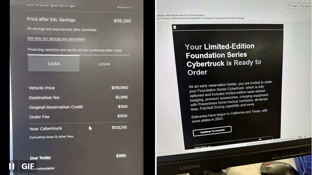As an early reservation holder, you are invited to order your Foundation Series Cybertruck, which is fully optioned and includes limited-edition laser-etched badging, premium accessories, charging equipment with Powershare home backup hardware, all-terrain tires, Full-Self Driving capability and more.