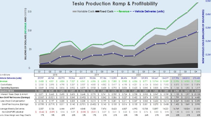 GAAP Net Income is a measure of a companies final earnings after all expenses including taxes. James shows this being almost $4 billion in Q4, 2021. Many stock prices are based on what is called a price earnings ratio and right now, Tesla is just over 600 for its price earnings ratio (this is considered high).