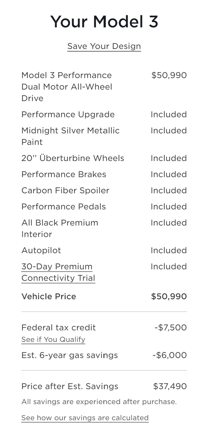Unfortunately for Tesla, the Model 3 Long Range, and the Model 3 RWD do not qualify for these requirements. This makes the Tesla Model 3 Performance less expensive than the Model 3 Long Range.