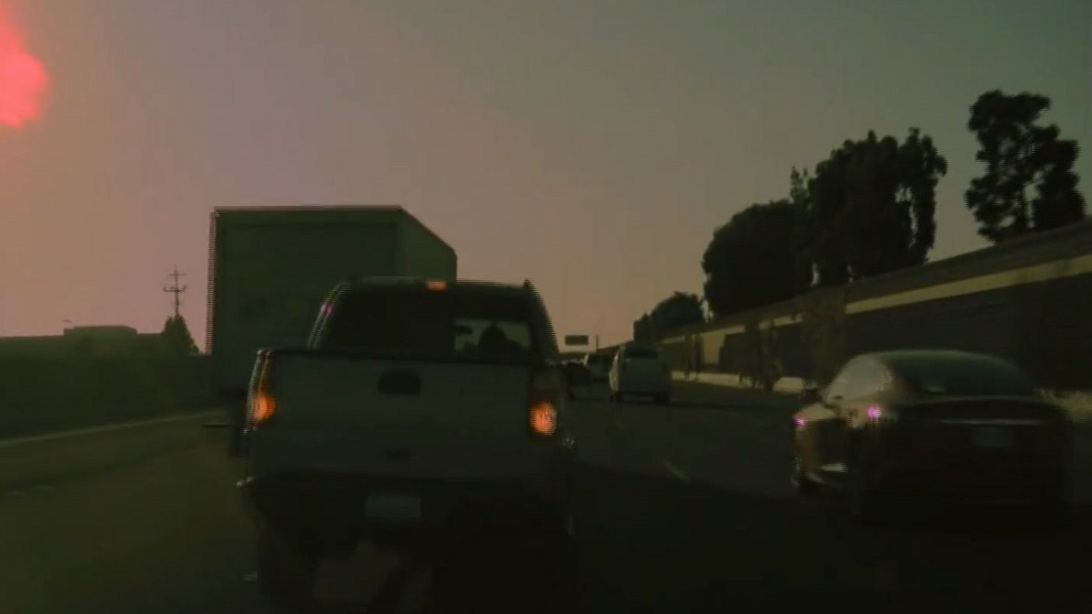 The driver of the Tesla Model 3 had their dash cam on and was driving at freeway speeds - with the flow of traffic.