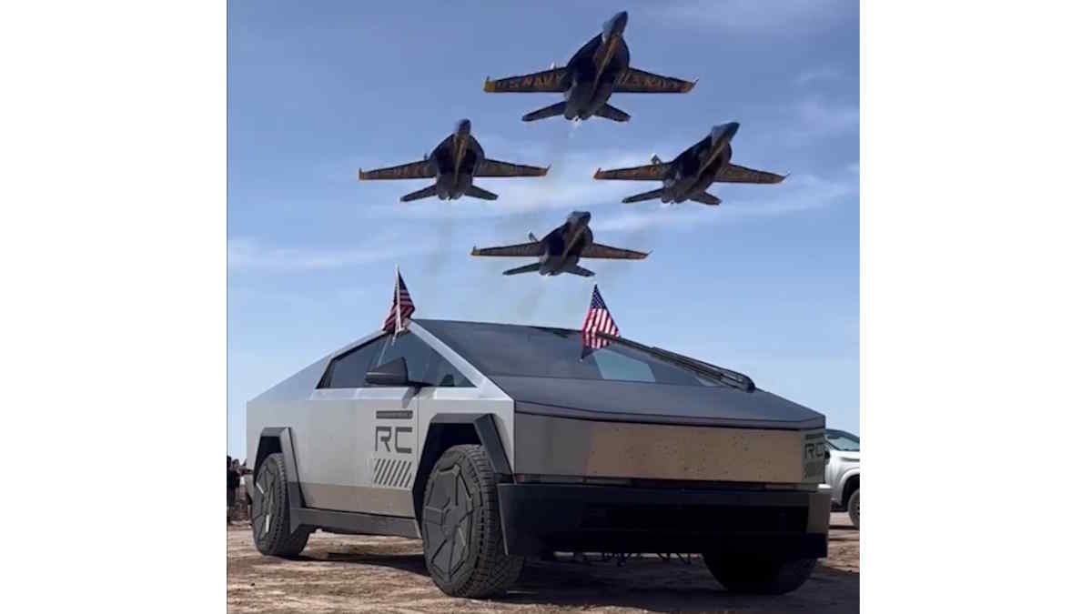 Recently, a video of the Cybertruck was shown, with two American flags and four fighter jets flying quickly over head.