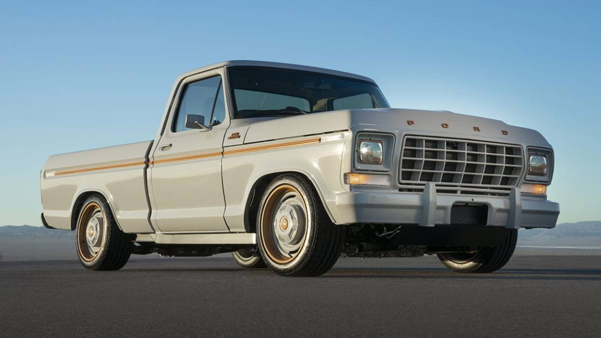 The show-stealer here is not the retro-themed suit of clothes but rather the performance hardware that lurks underneath. A custom chassis is home to the Mustang Mach-E GT's front and rear electric motors. Ford is not ready to talk about what kind of battery the truck is using but did confirm that the setup here produces 480 hp and 634 lb-ft of torque. While the company also chose not to release final performance figures, look for the extra juice to make this all-wheel-drive beast a swift pony off the line.