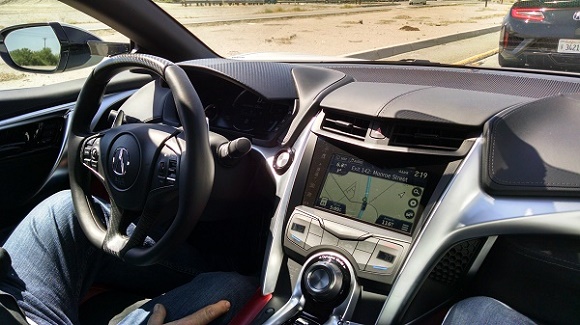 Ron and I both marveled at how civilized 2017 Acura NSX is on the street. It’s that thing that Acura does so well, a split driving personality if you will. NSX performs as well on the street as it does on the track. Cabin to street visibility is surprisingly good in this mid engine supercar. The cabin is quiet, leather glove comfortable, body-form-supportive, yet not restrictive. Not an easy ergonomic balancing act in what is essentially a very refined and civilized, two-place GT-3 car.
