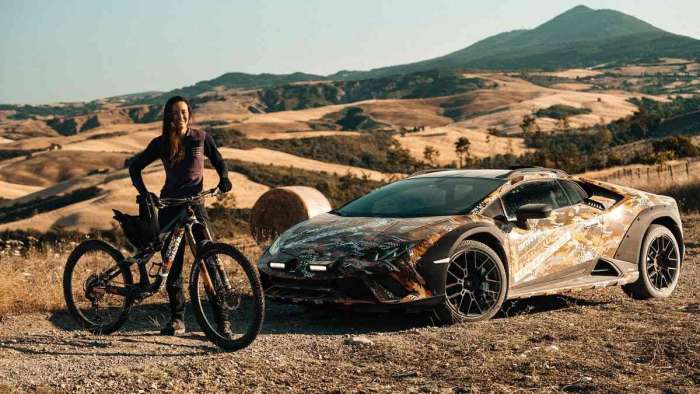 Speaking of V10s, the Sterrato makes use of the 630+ horsepower variant found in the Huracan Evo with Lamborghini's all-wheel drive and rear-steer systems tuned for off-road performance.