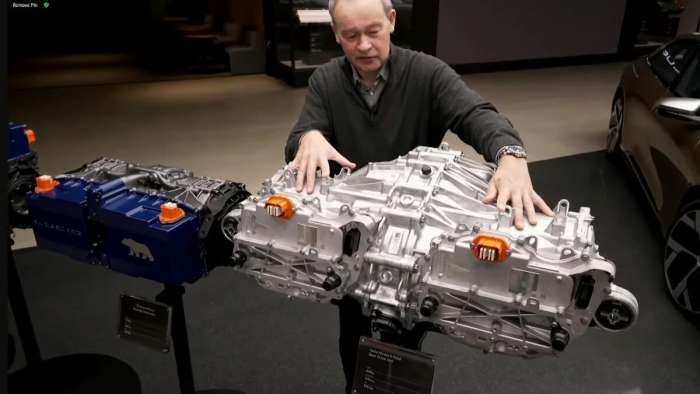 The majority of Rawlinson's presentation centered around the need for better efficiency in electric vehicles, giving him a nice opportunity to show off some of Lucid's proprietary EV tech. First up is the battery, followed by the individual components of the drive system with explanations of how the engineers eked maximum efficiency from each.