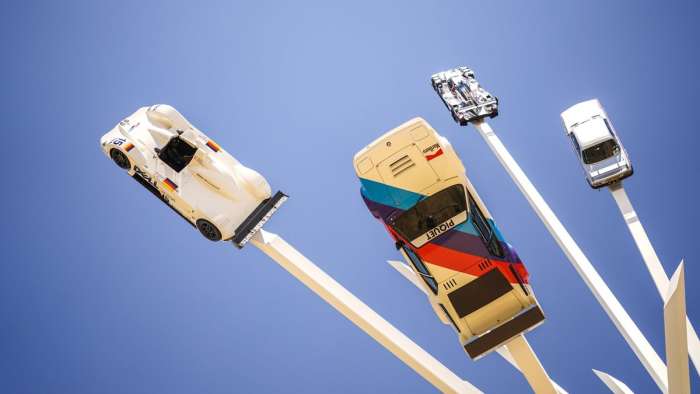 At the center of it all stands an enormous sculpture by artist Gerry Juddah. Featuring significant cars from a single manufacturer the installations have been a fixture since 1997. This year's has been erected to celebrate 50 years of BMW's M division and features Bimmer's upcoming M Hybrid V8 LMDh race car, a V12 LMR, M1 Procar, 3.0 CSL and a 3 Series WTCC car. BMW reportedly footed a $1.22 million bill for this year's display.