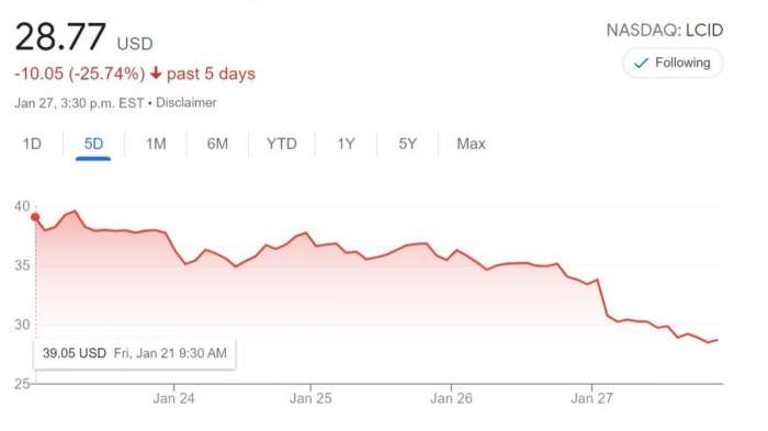 It hasn't been a good Thursday for Lucid Motors, or any of the other major players in the EV market for that matter. Down more than 13% by the end of regular trading, today has been the latest in a series of blows that has seen more than 25% stripped from the Air manufacturer's stock price in the past five days. From the halcyon days of mid-$50s prices seen at the tail end of November 2021, LCID has fallen as low as $28.80 in recent sessions.