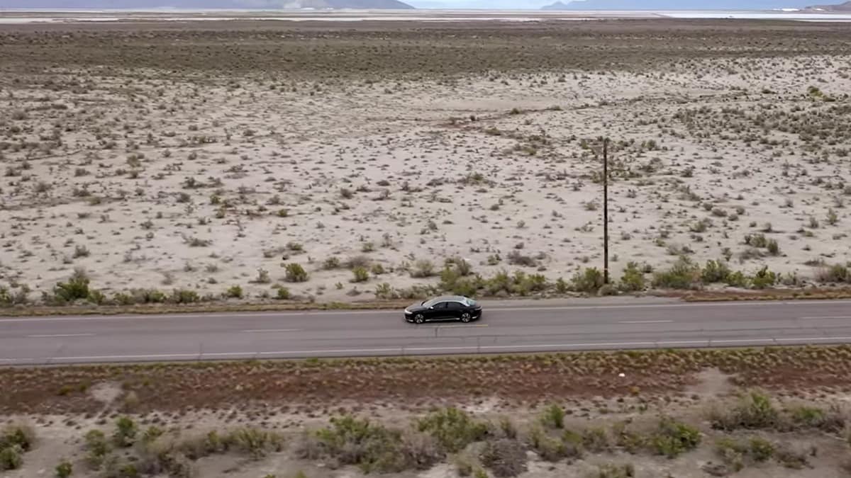 The record route needed to check a few boxes to be suitable. Ideally it would be long, flat, near a charger from which the team could start, and it needed to have little to no traffic. After a bit of scouting in the Air while the other half of the team hooned about on the Bonneville salt flats in a Rivian R1T a route from Nevada into Utah was selected.