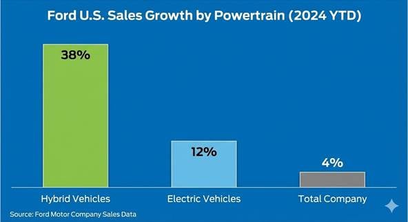 While the retreat from large EVs is a headline-grabber, the more significant story is Ford's full-throated embrace of hybrid technology. This is not a defensive move but a pragmatic one based on hard data. In 2024, Ford's hybrid sales have seen explosive growth, far outpacing both its EV sales and the company's overall sales.