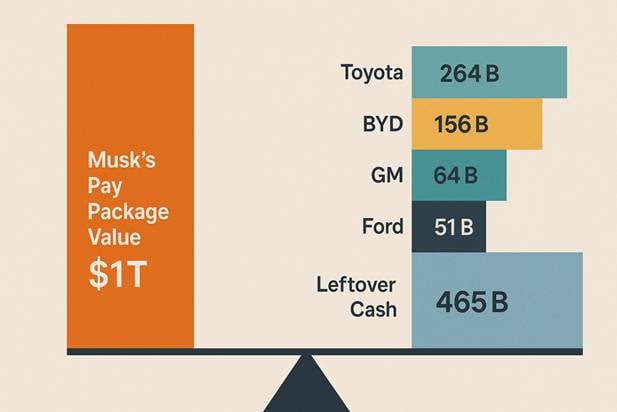 Tesla's $1 trillion compensation package is far more than a simple payday; it is a staggering bet on a single individual. When compared to the value of Tesla's entire physical infrastructure (28x smaller), its annual profits (140x smaller), or its legacy auto rivals (all of whom could be bought with the money), the opportunity cost is astronomical. Worse, the optics of this package are jarring, approved amid a wave of tech layoffs driven by the very AI Musk is pioneering. The most telling part may be that the "impossible" benchmarks set to justify this sum might just be corporate theater, with the board seemingly empowered to grant the payday anyway. Shareholders have approved the deal, but the real cost—in capital, focus, and employee morale—is yet to be calculated.