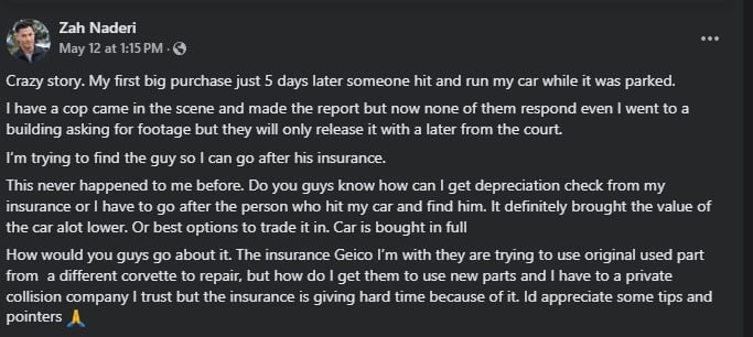 The Facebook group C8 Corvette Owners (And Friends) quickly rallied to Naderi’s side, and in doing so, peeled back the curtain on an industry few fully understand until it’s too late. Zah wasn’t just dealing with the loss of an unsullied sports car, he was fighting a faceless economic machine programmed to calculate risk, minimize payout, and move on.