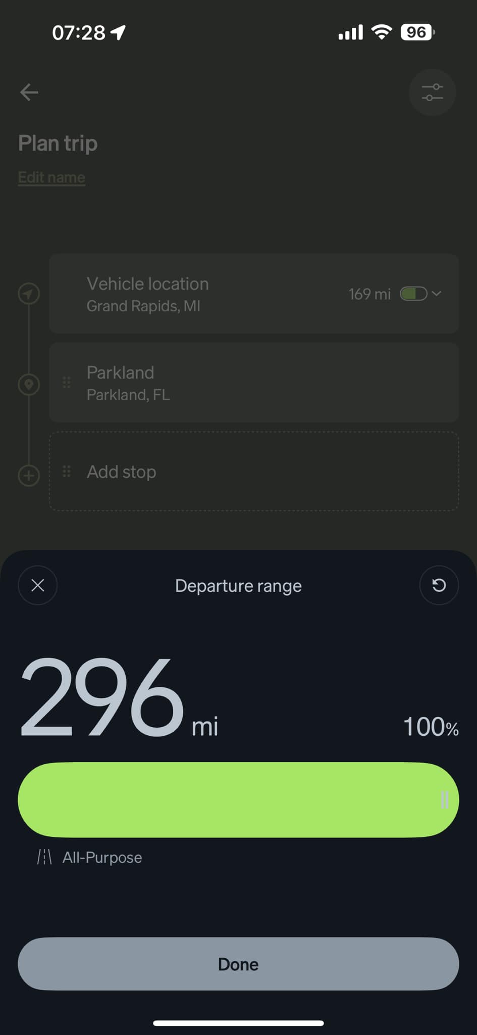 -Tried adjusting the consumption numbers accordingly in ABRP. I actually made it 2 mi/kWh whereas the Rivian app seems to have it at 2.22 mi/kWh