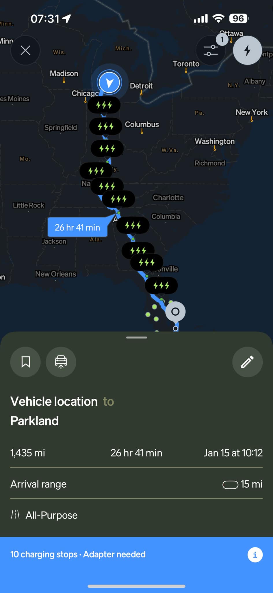 Note; there’s is a 10 mile distance difference between ABRP & the app, not sure why, but that shouldn’t account for an almost 4hr 30 min difference in travel time. My wife is willing (barely lol) to do the trip if it takes the time ABRP says, but says it’s a dealbreaker if it’ll take almost 27 hrs. Halp plz”