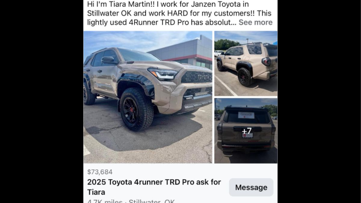 The new-generation Toyota 4Runner hasn’t even had enough time to stretch its legs in the real world yet, but the resale market is already rising high. I was browsing through the "6th Generation Toyota 4Runner" Facebook group this morning when a post by Izzy Tzaig talking about that price hike caught my attention. He saw a used 2025 Toyota 4Runner, with just under 5,000 miles on the clock, that was listed for more than $70,000. That’s higher than MSRP for most brand-new TRD Pro or Trailhunter trims. To make matters more eyebrow-raising, the seller had turned off comments on the listing, a sign that they seemed to know the pricing was going to spark a firestorm.