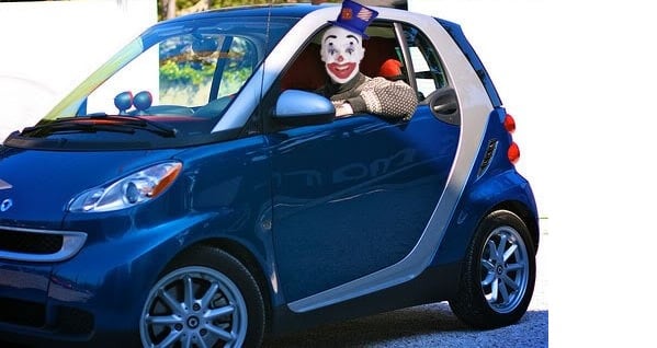 • Smart gas car – Likely works for Barnum and Bailey and wears a red nose and large red shoes.