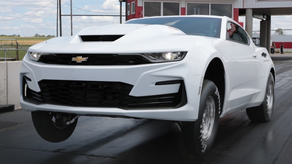 Chevy says the COPO Camaro can only be used to race. “The COPO Camaro is sold as a Chevrolet Performance part and cannot be registered for street use. It competes in NHRA Stock and Super Stock eliminators and comes standard with a carbon fiber hood and wheelie bars.” Buyers can also outfit their cars with options such as a trunk-mounted weight box and a parachute.
