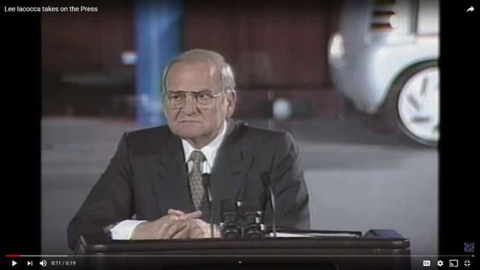 Iacocca was hired by Chrysler and engineered the first government loans to save the ailing company. The Chairman and CEO famously taught employees how to spell his name by repeatedly saying “I Am Chairman Of Chrysler Corporation America”. As a reporter, I always spelled his name correctly.