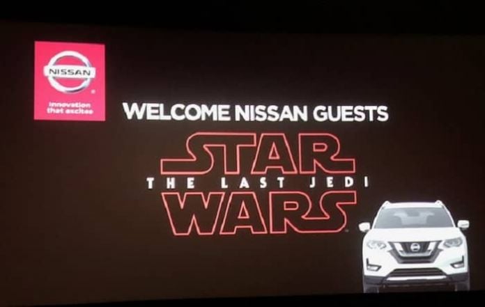 Unlike other cross promotion partnerships, Nissan vehicles are not featured in any aspect of the film. All of similarities are created in the advertisements, or in the special Star Wars inspired futuristic vehicles that will be displayed at special events and auto shows. Many of the theaters are featuring special Nissan displays. Nearly all of the Nissan dealers are expected to have Star Wars displays. It is a safe bet that the huge crowds who are attending the biggest movie of 2017 will at least notice the Nissan presence.
