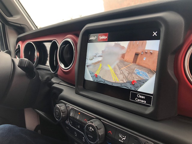 I must admit my personal favorites are some of the gizmos that Jeep added to make the 2020 Jeep Gladiator fun and functional. Everyone knows that people can’t wait to get the Gladiator dirty and truly test out its off-road ability. Jeep is more than ready and even built a camera into the front grille so that drivers know exactly what is ahead of them. Jeep also built a camera lens washer into the grille, so no matter how dirty you get the Gladiator, you can still get a great view of what’s ahead. No more getting out to clean off the lens, the washer is controlled through the interior infotainment screen. Clever and useful.