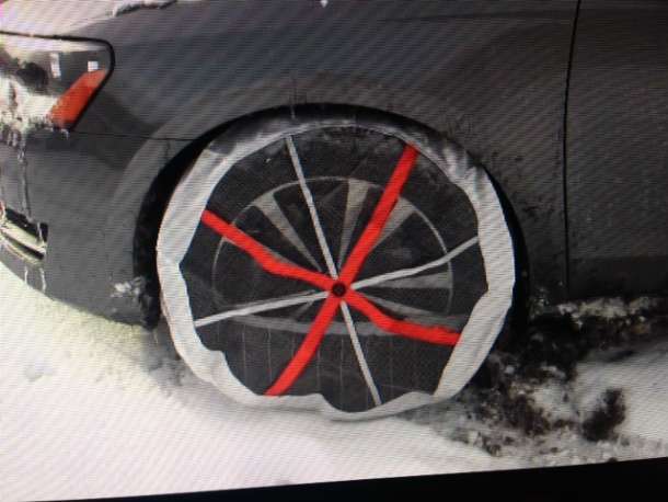 The ‘Autosock’ is made out of a textile material and fits over the wheel. You do not have to use a jack to attach them. Testimonials on their website say they are easier to put on than chains and very effective.