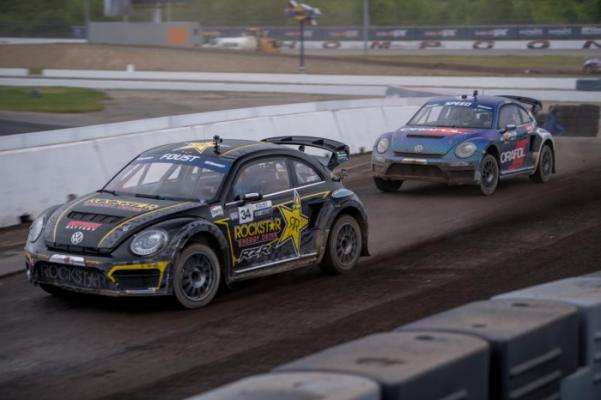Tanner Foust, whose No. 34 Rockstar Energy Drink Beetle GRC, handily won the first of two Finals during the New England weekend and took two Semi-Finals. He was easily winning when he lost a wheel three laps from the end and ended up sitting out the finish.