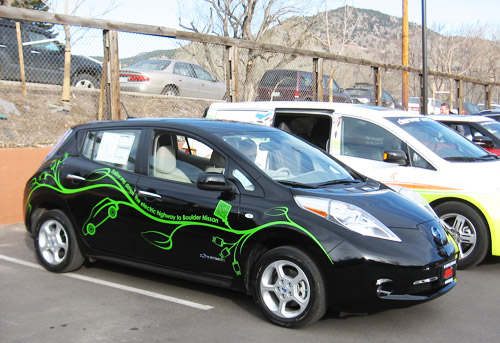 The support grid for electric vehicles is already there and rapidly improving if you just look for it. During the Green Car Convoy in Colorado last week, we visited the Alfalfa’s store where met Nigel Zeid of Boulder Nissan. He had brought a Nissan Leaf to the Boulder stop of the convoy and told us of 20 Nissan Leafs that have been submerged in the Japanese tsunami last year – each and every one had been resurrected!