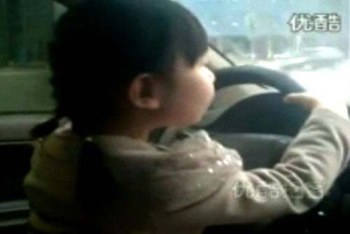 At one point she mistakenly enters a left turn lane but deftly steers back into the forward lane to continue on her way. After roughly two minutes of the video her father said, "Jia Zheng, stop the car. Let daddy drive." She carefully crosses to the right side of the road and parks the car, putting the shifter into park with some difficulty.