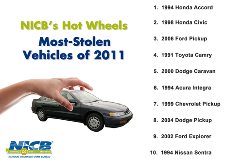 NICB today released Hot Wheels − the report listing 10 vehicles stolen most often in the US. The report analyzes data submitted to the National Crime Information Center arriving at the makes, models and years most frequently stolen in 2011.