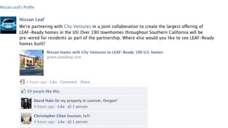 Most everyone else was in favor of pre-wiring for electric vehicles like the Nissan Leaf from the great city of Seattle to the Southern state of Georgia.