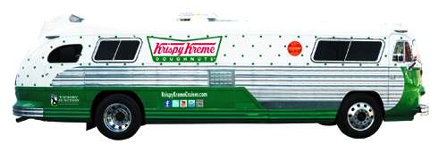 As it turns out, the company is beginning to celebrate its 75th Anniversary, having been first established in 1939. The image above is the Krispy Kreme Cruiser, a newly restored and bowtie branded 1960 Flxible Starliner to be driven across the country by brand ambassadors who will entice fans to join the 75th birthday celebration of the world’s most famous doughnut.