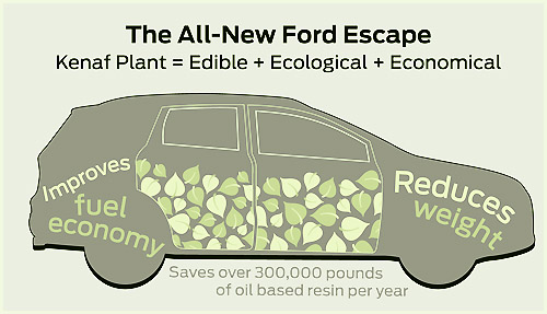 “Kenaf and the other renewable materials in the Escape have made the vehicle more environmentally friendly and fuel efficient,” said Laura Sinclair, materials engineer for Escape.