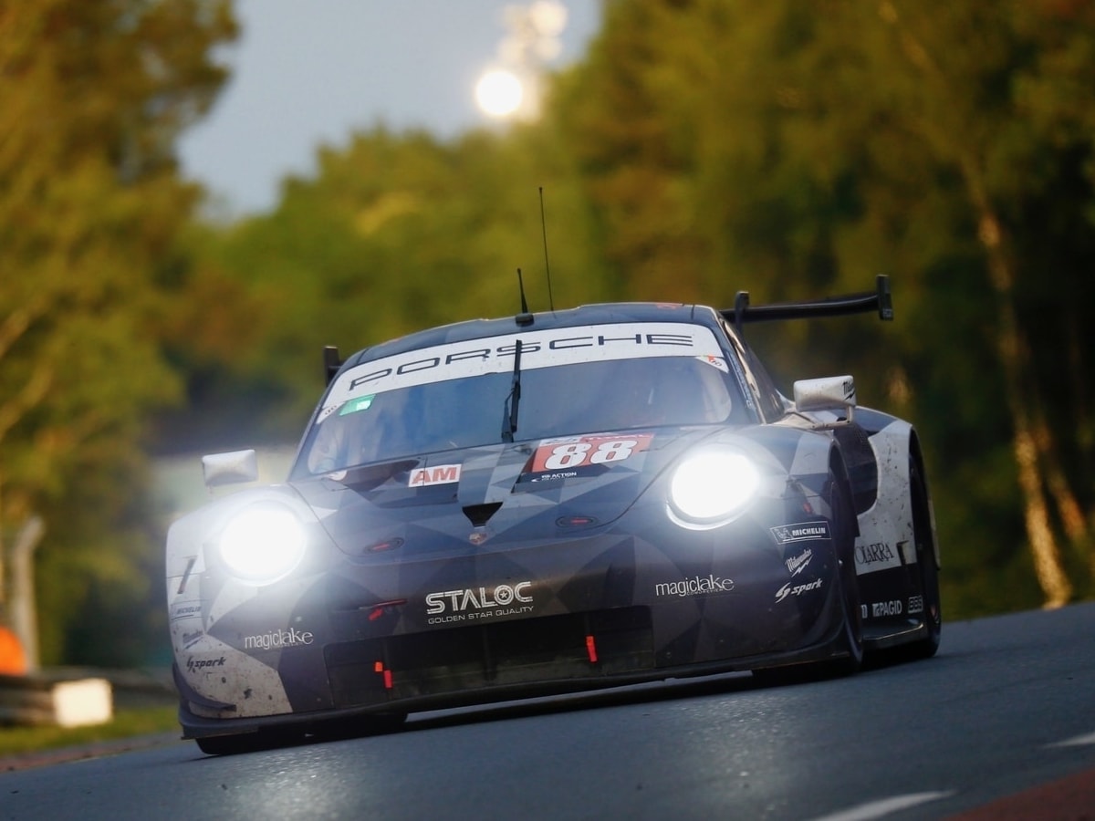 Porsche's two teams field 911 RSR's, which are similar to the manufacturer racecars which the marque sells to racing customers. The cars are notable for their aggressive diffusers and large rear wings, which give the cars sufficient downforce to maintain grip. Depending on restrictions, the engine, a 4.0 liter flat six mounted midship (as opposed to in rear, as is traditional for 911s), produces 510bhp and produces the signature scream which accompanies Porsche racecars everywhere.