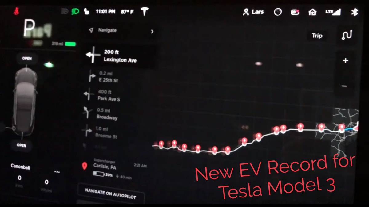 Cannonball Run EV Record Set in a 2018 Tesla Model 3