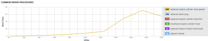 If you look at the graph, most of the problems start occurring around 100k miles and peak about 170k.