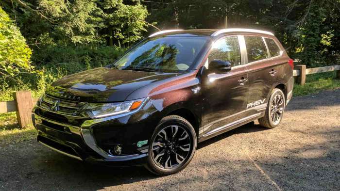It offers all-wheel drive, with an electric motor powering the rear wheels and a gas engine up front. It remains the only plug-in hybrid with a fast-charge port that can plug in to a widespread network of CHAdeMO fast chargers built for Nissan Leafs.